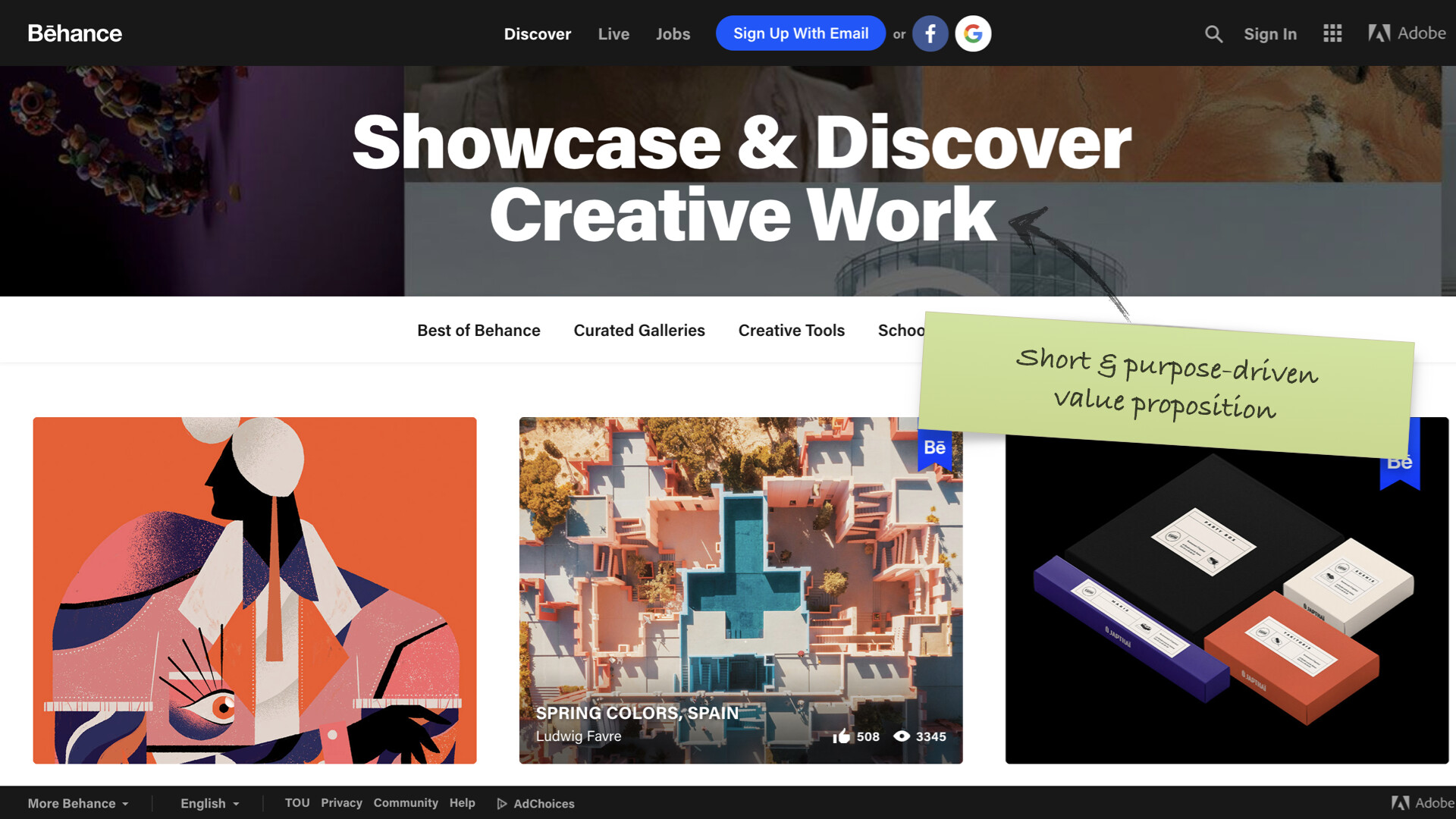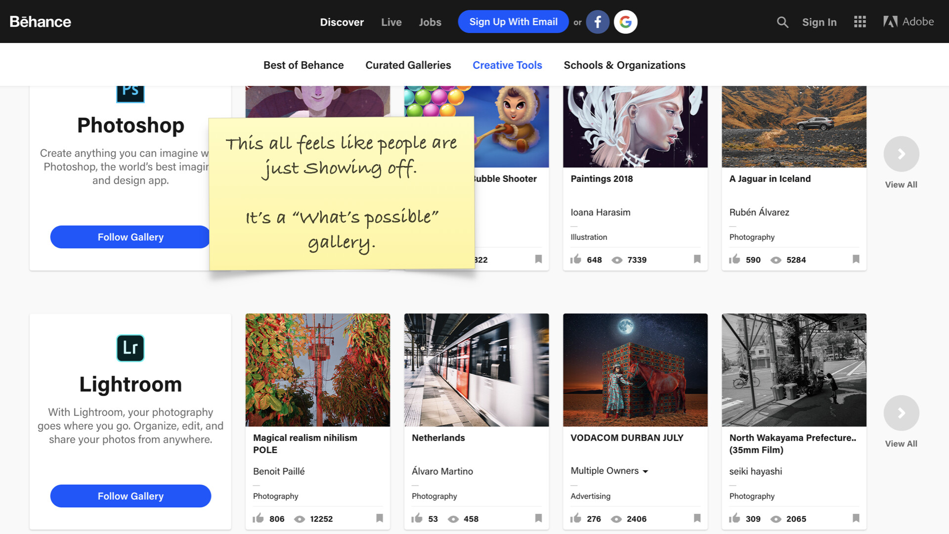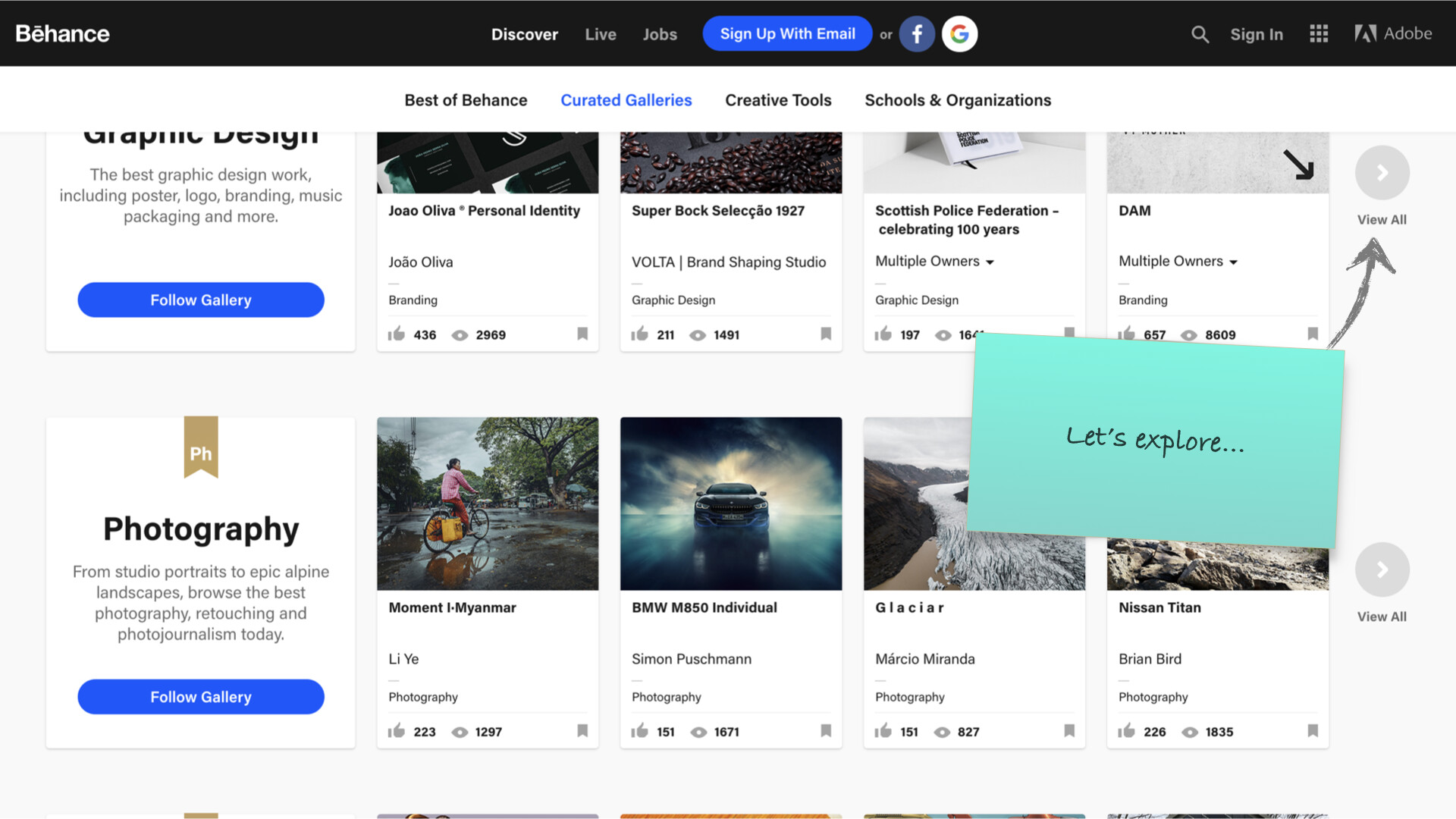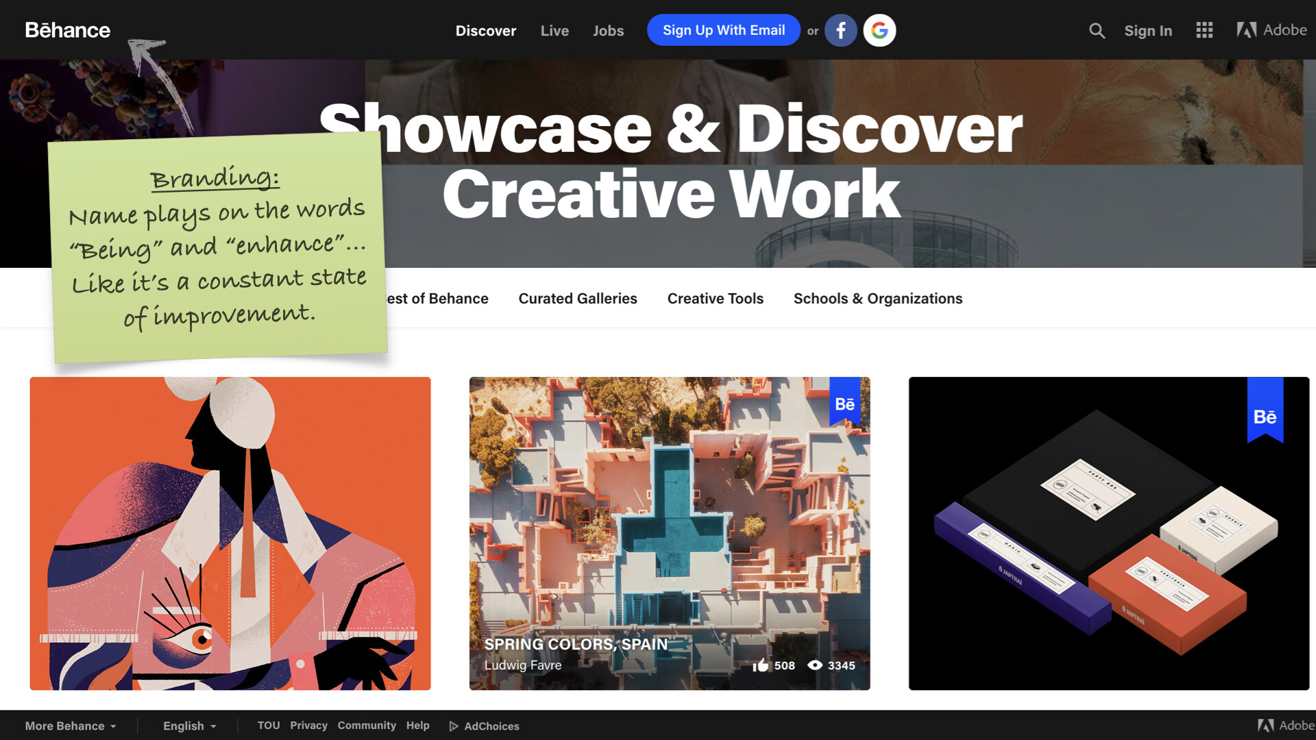 Acquired by Adobe in 2012, Behance is the premier site to showcase work created with Adobe’s suite of products. Let’s examine how good a job Behance does, showcasing work created with Adobe’s products.