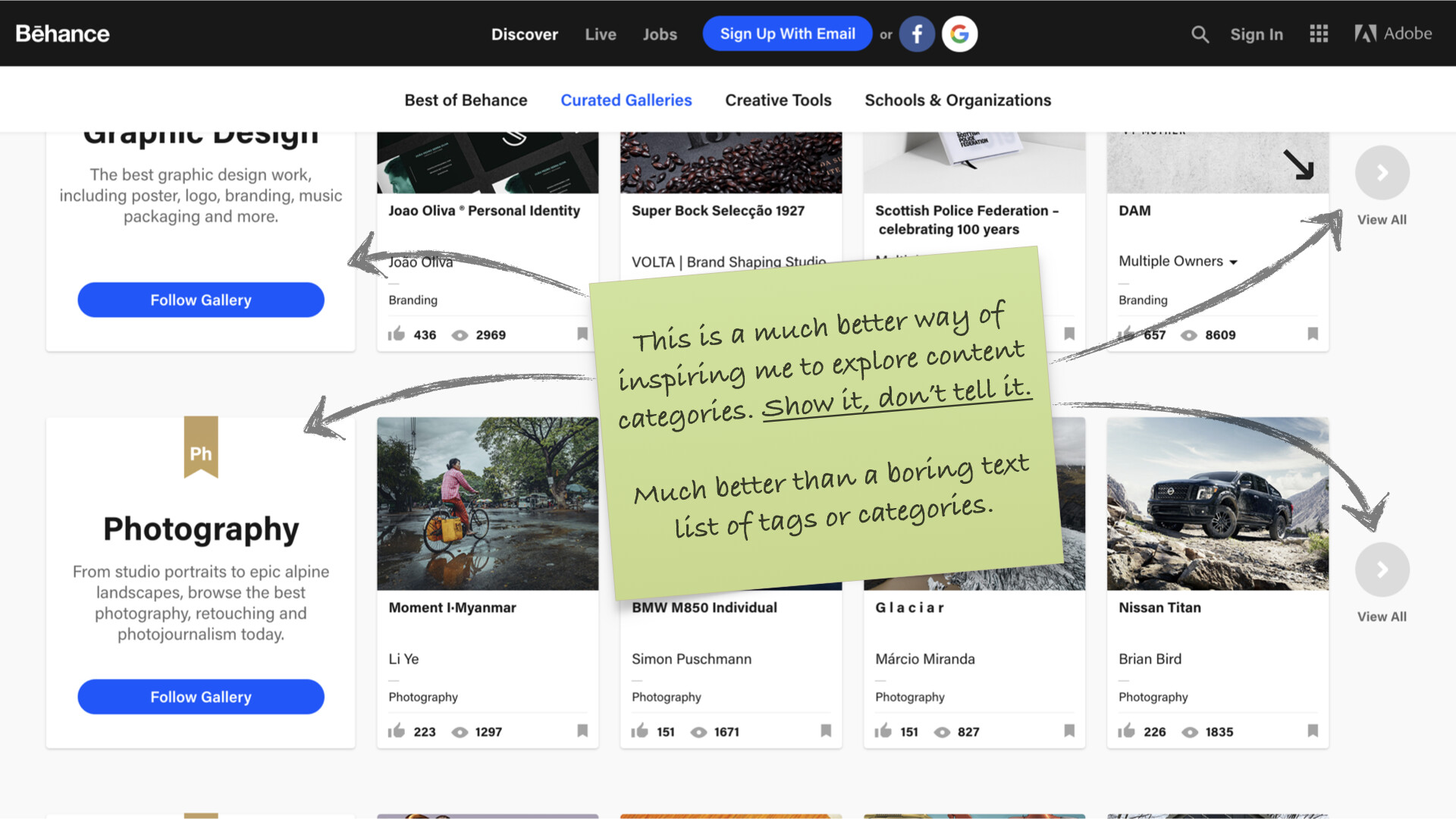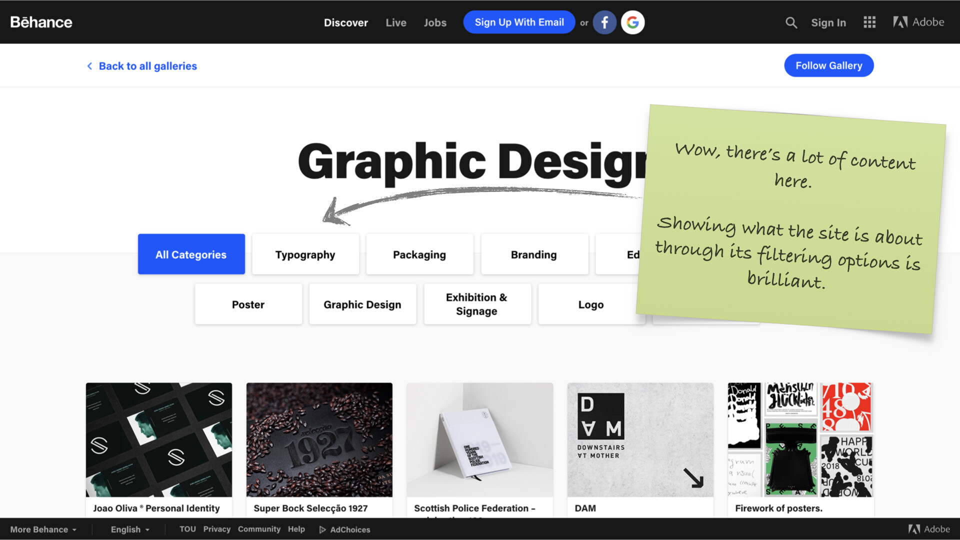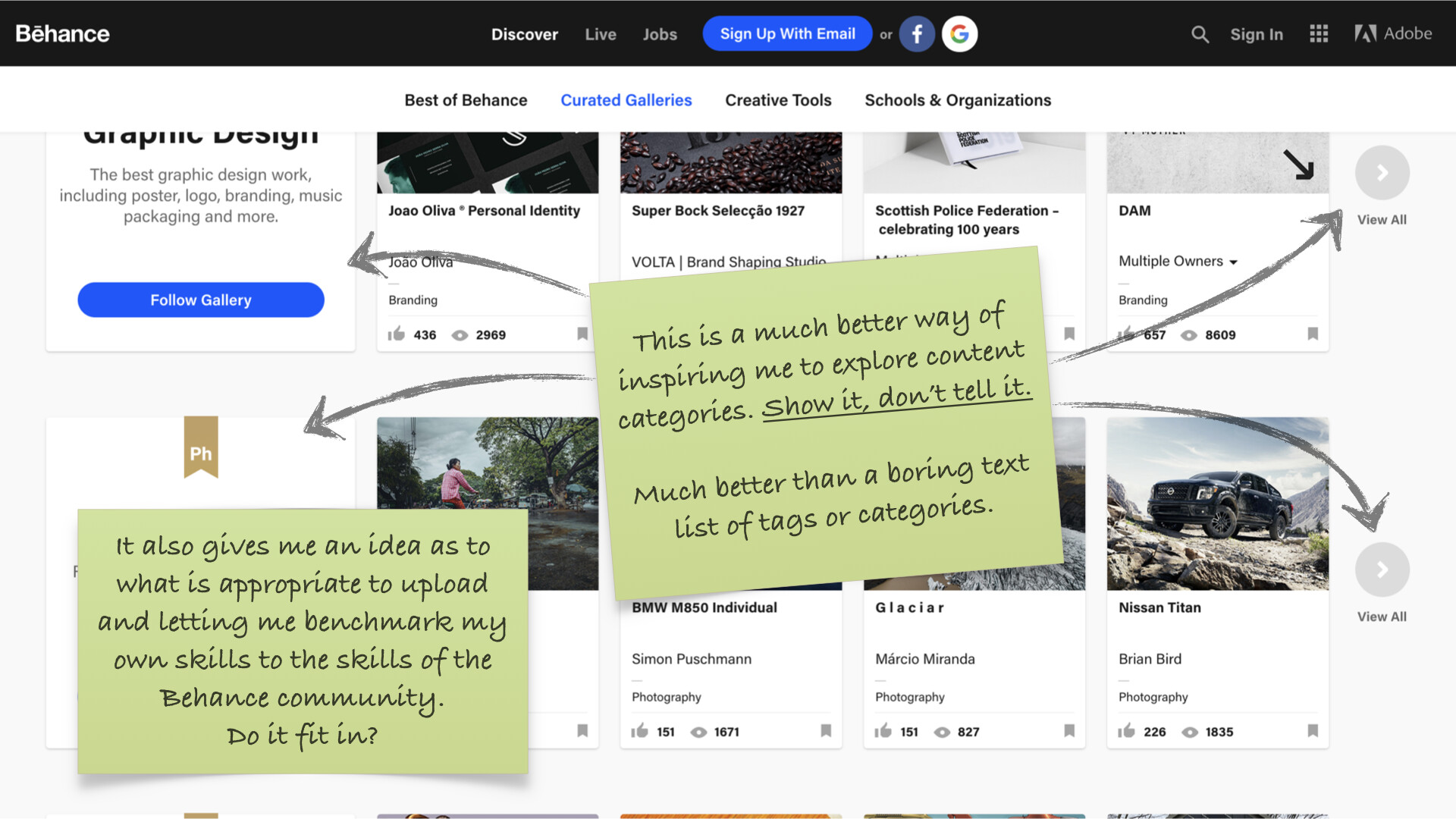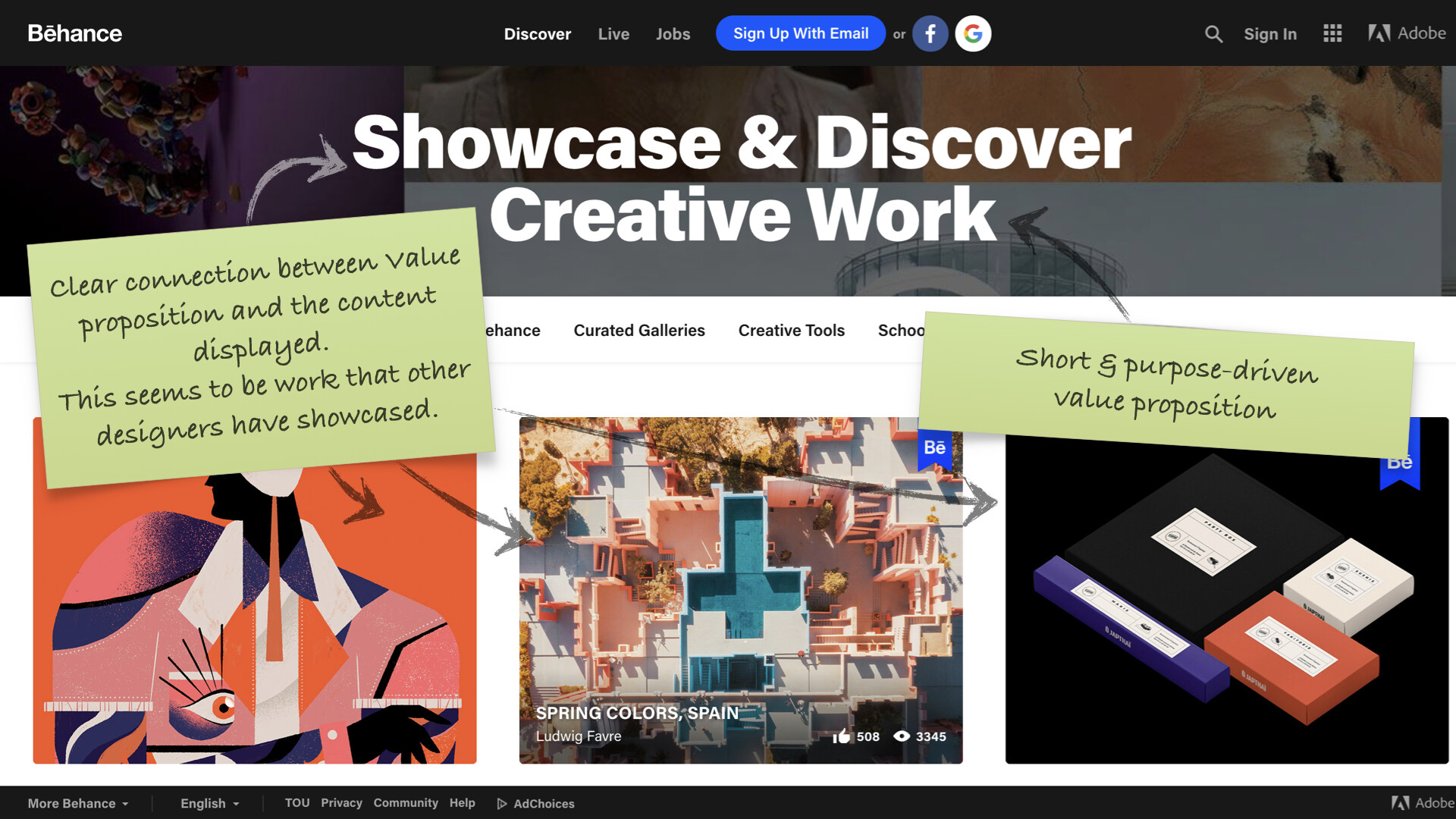 Acquired by Adobe in 2012, Behance is the premier site to showcase work created with Adobe’s suite of products. Let’s examine how good a job Behance does, showcasing work created with Adobe’s products.