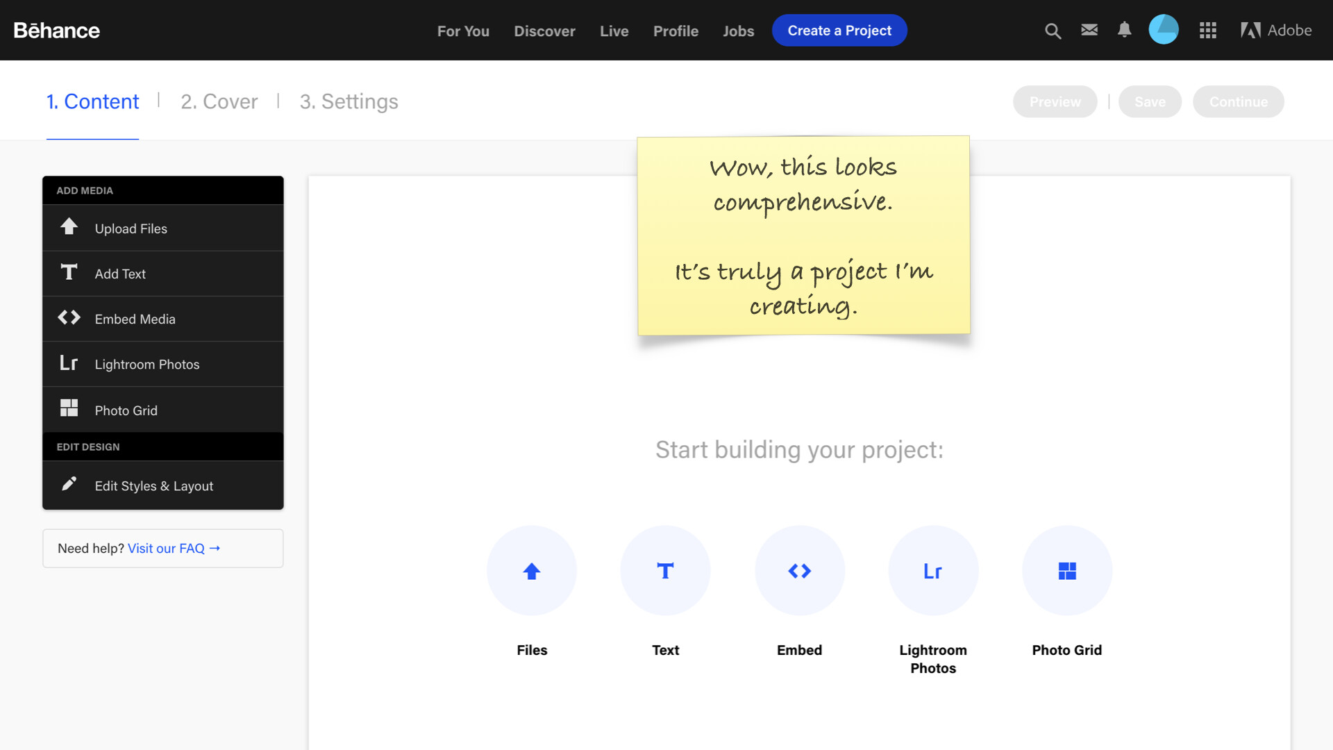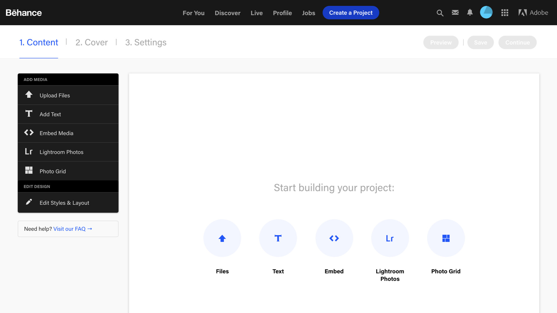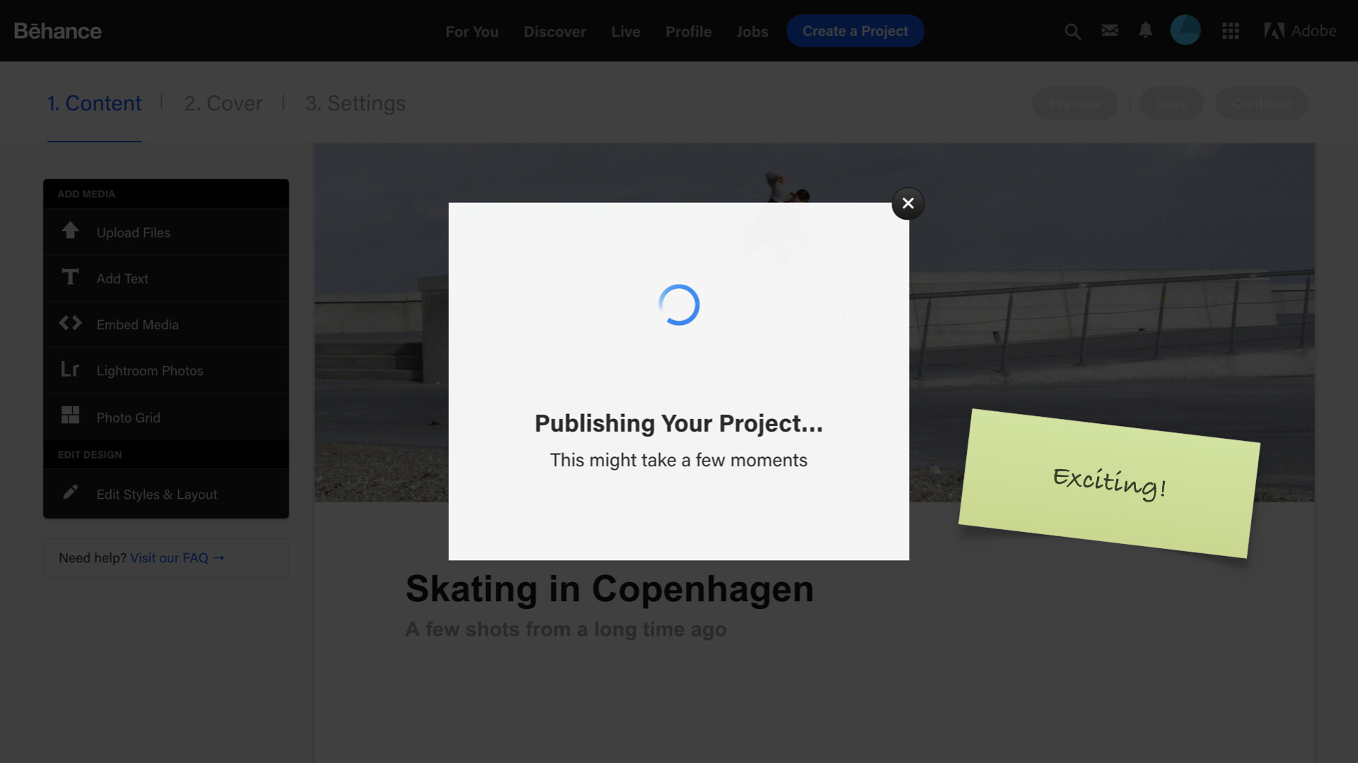 Behance is a social medium for showcasing your design work. Work showcased at Behance is bold and beautiful. Let’s see how easy it is to create a new project at Behance.
