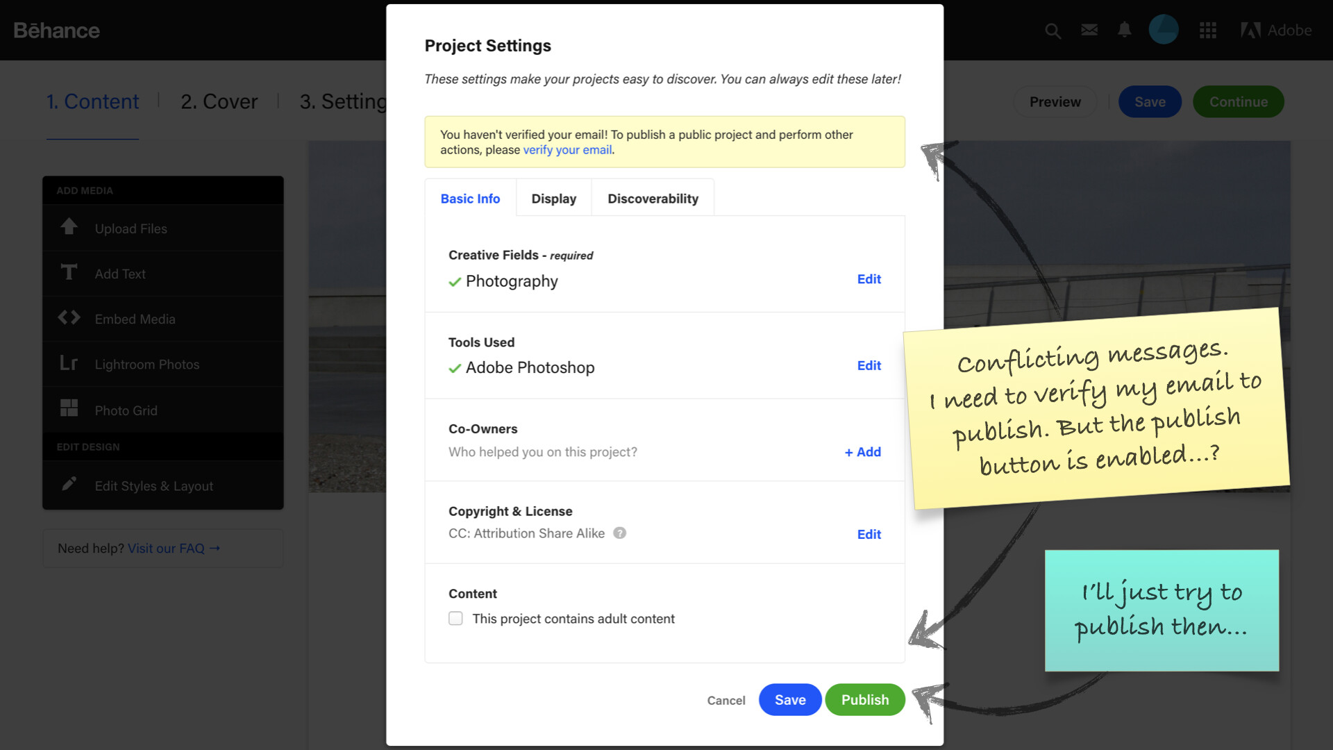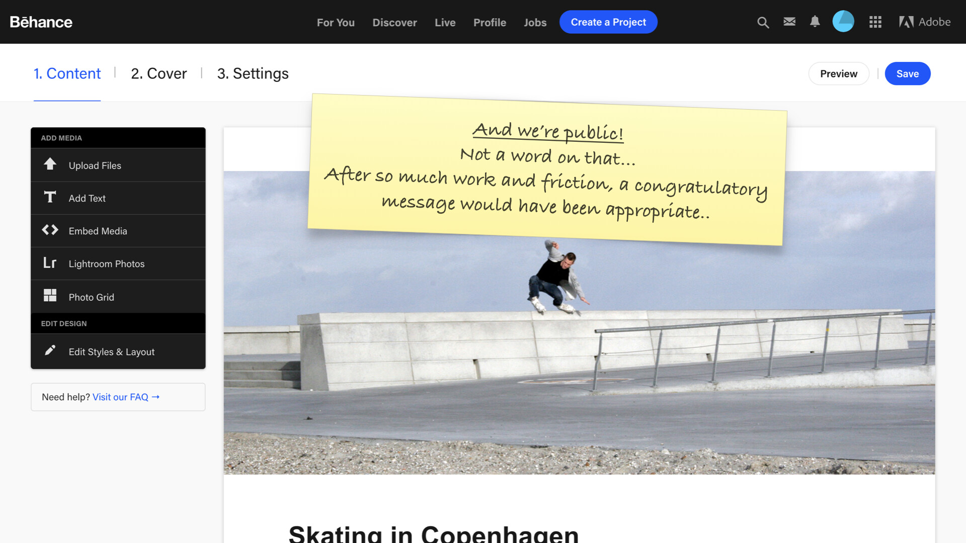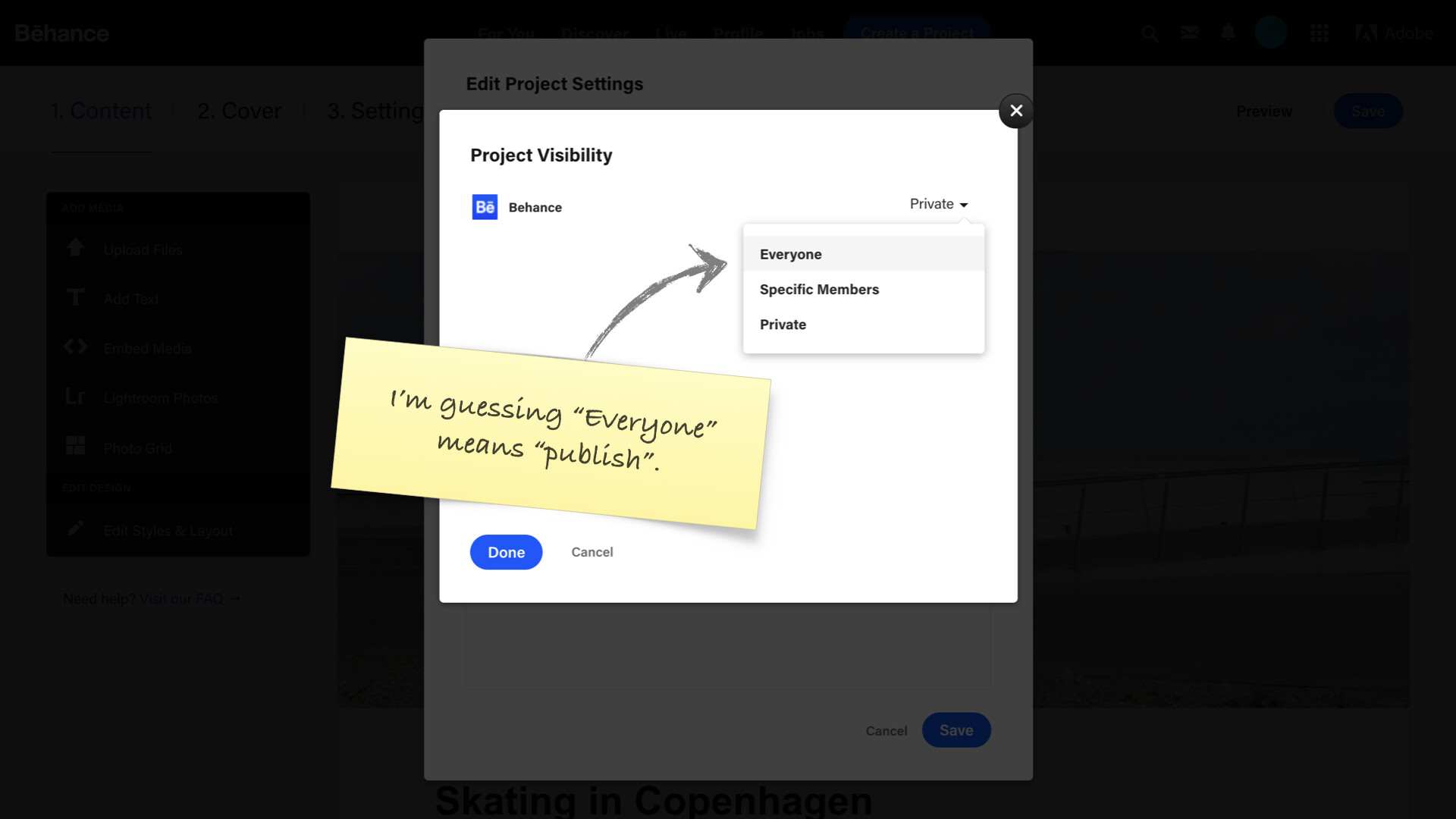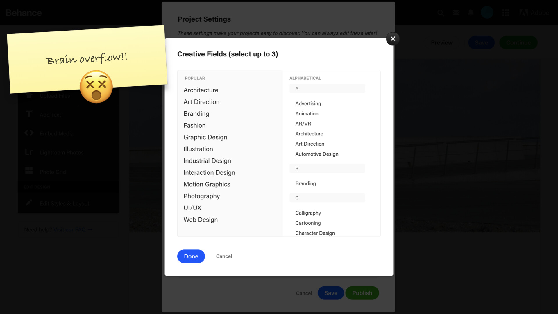 Behance is a social medium for showcasing your design work. Work showcased at Behance is bold and beautiful. Let’s see how easy it is to create a new project at Behance.