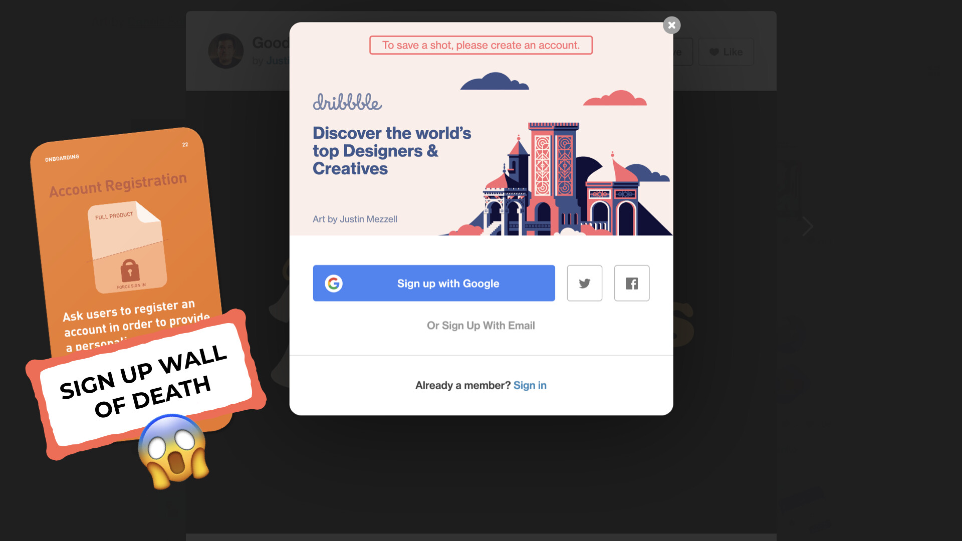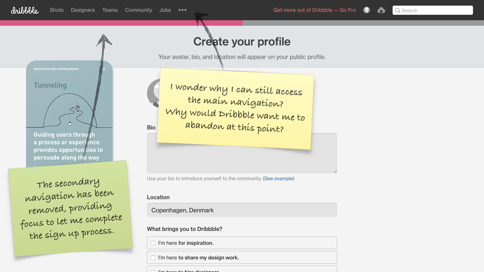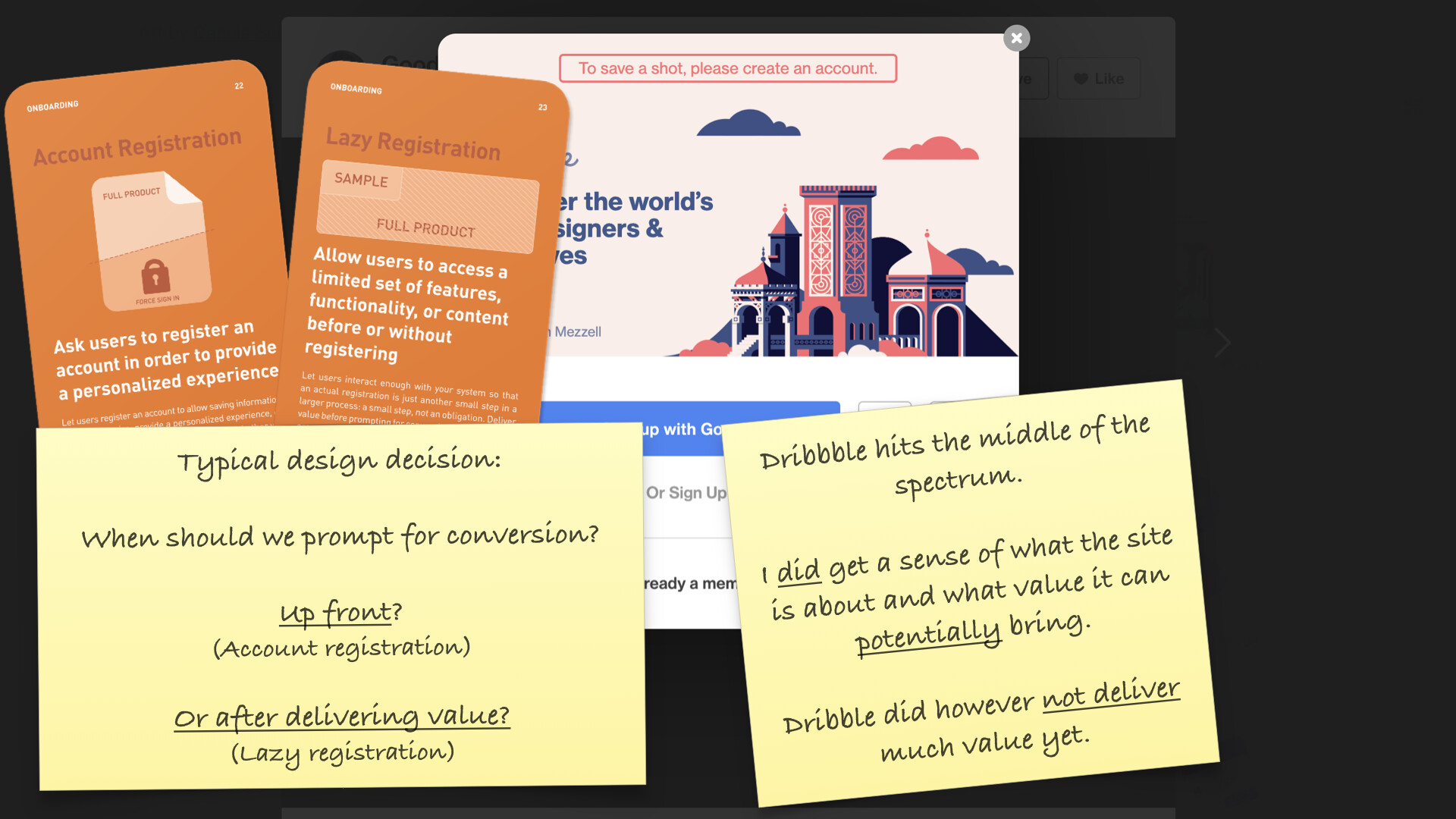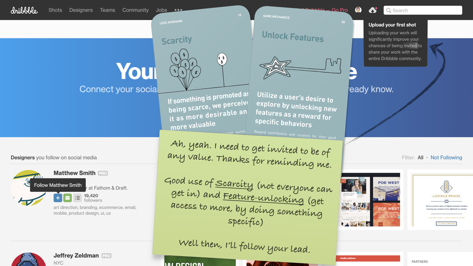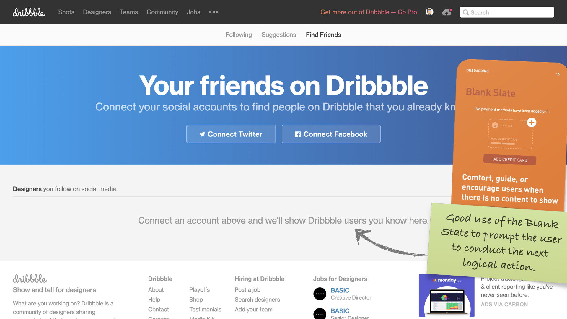 Dribbble is known as one of the leading visual design communities for design peers to share their best and most stunning work. But how well has a design community site designed its own UX flows?
