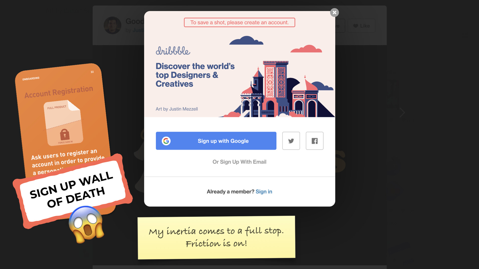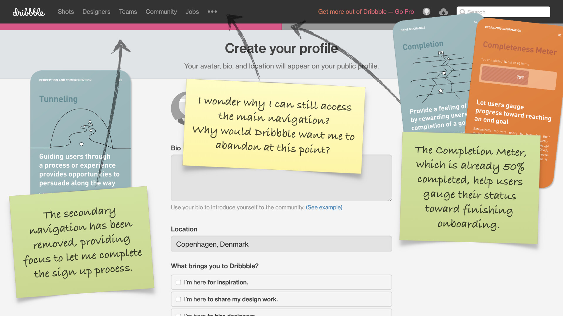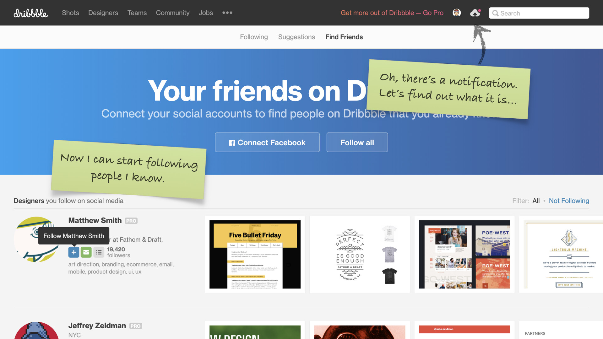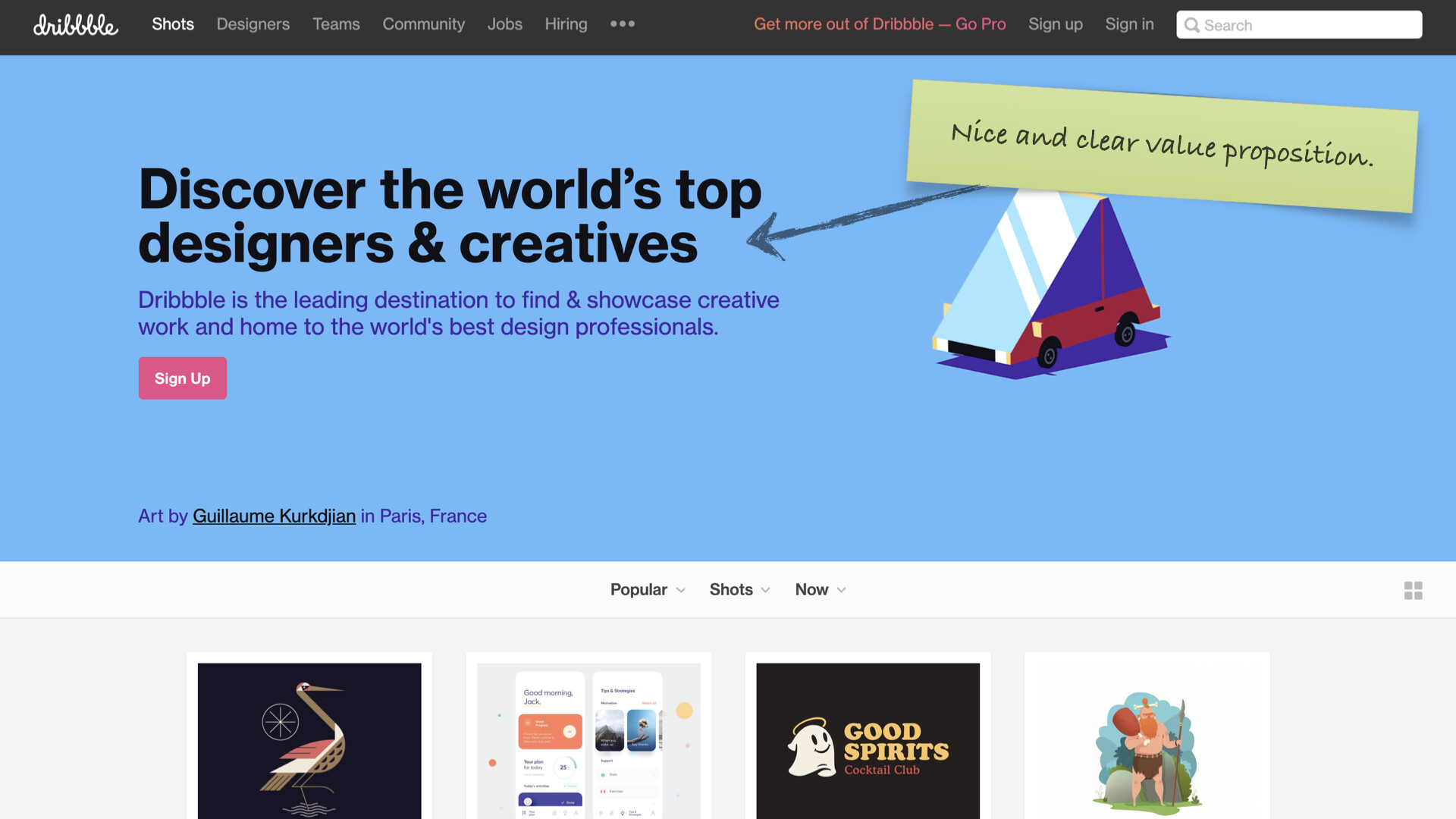 Dribbble is known as one of the leading visual design communities for design peers to share their best and most stunning work. But how well has a design community site designed its own UX flows?
