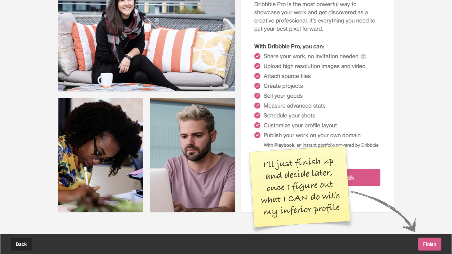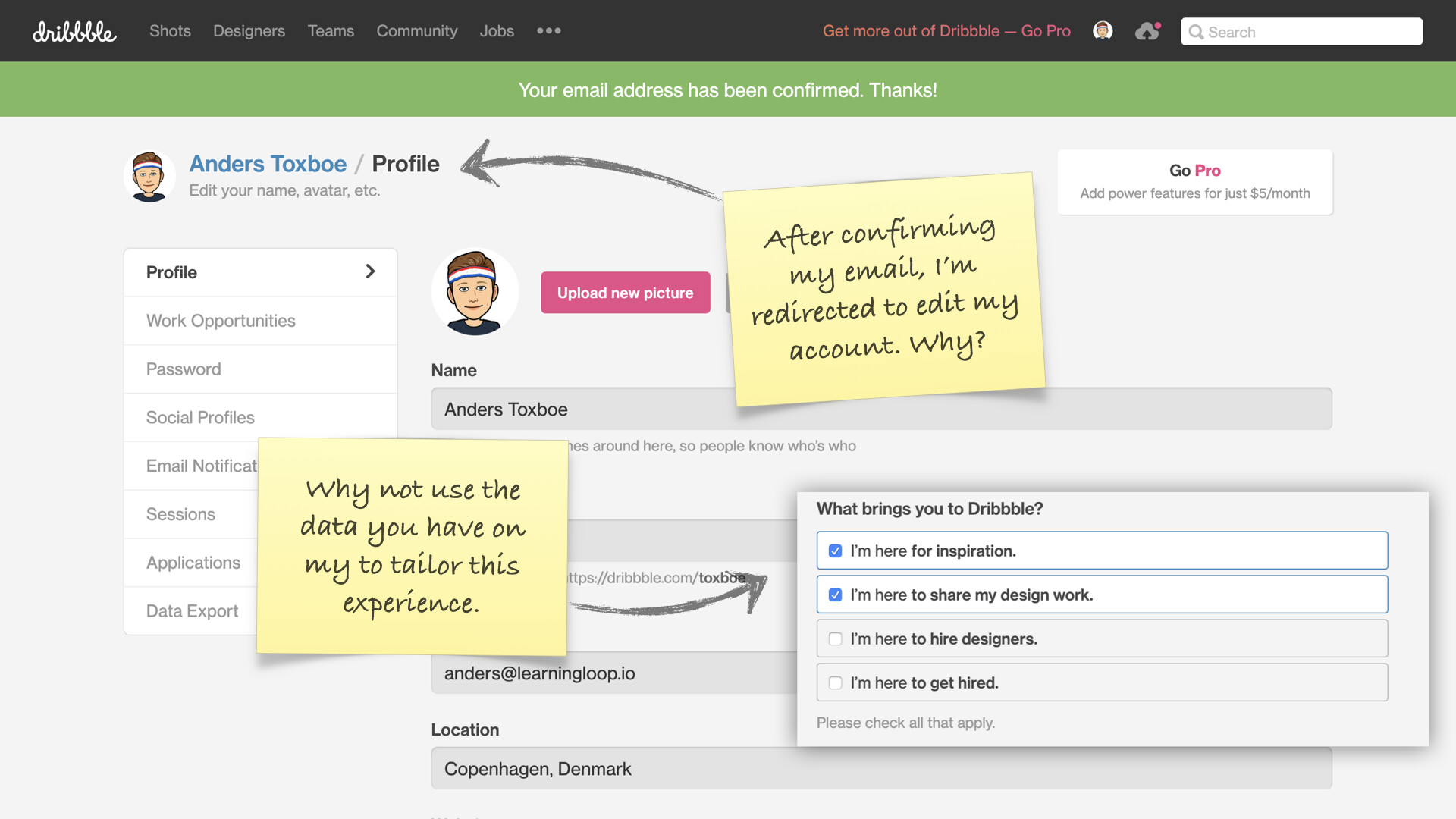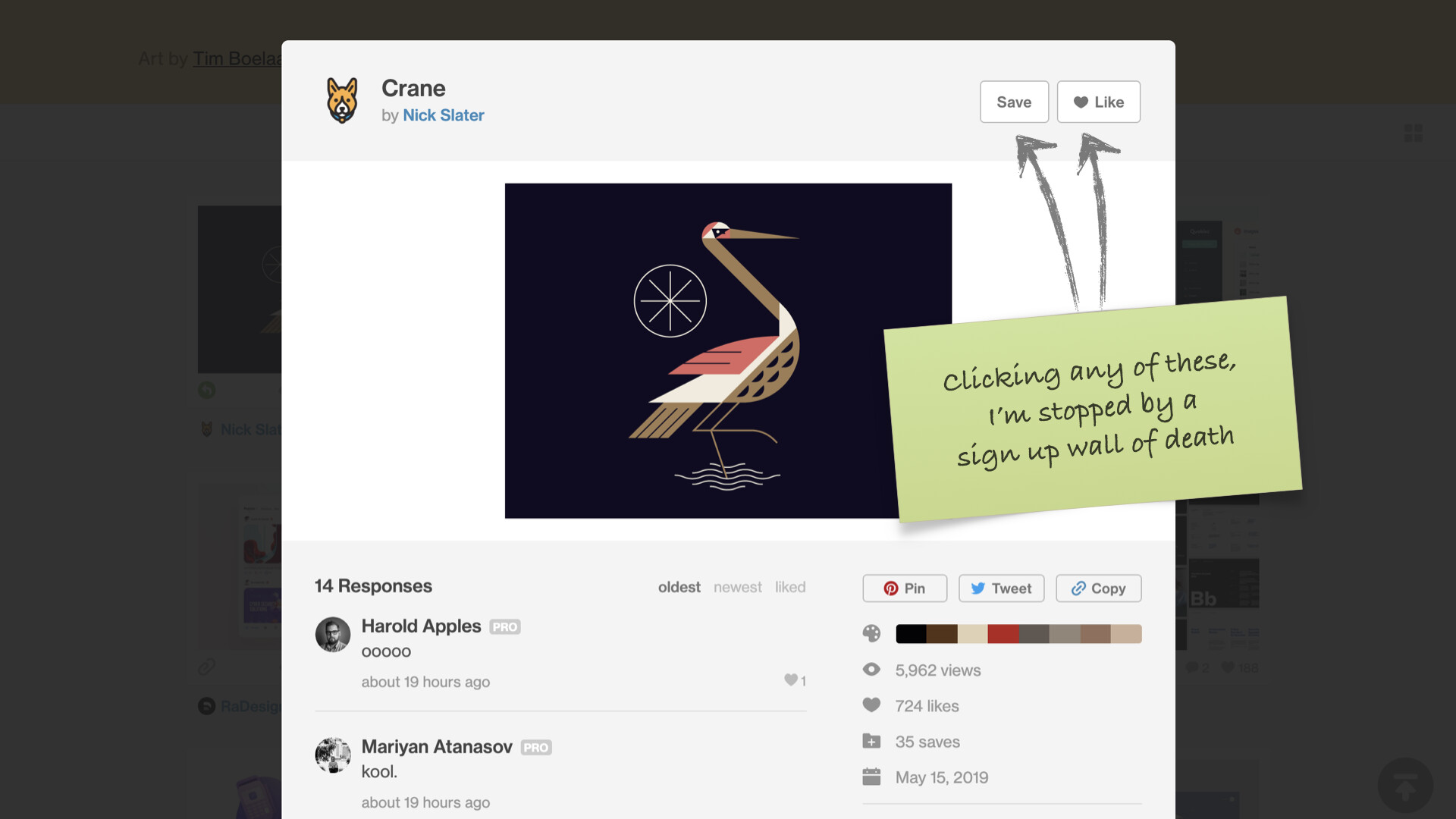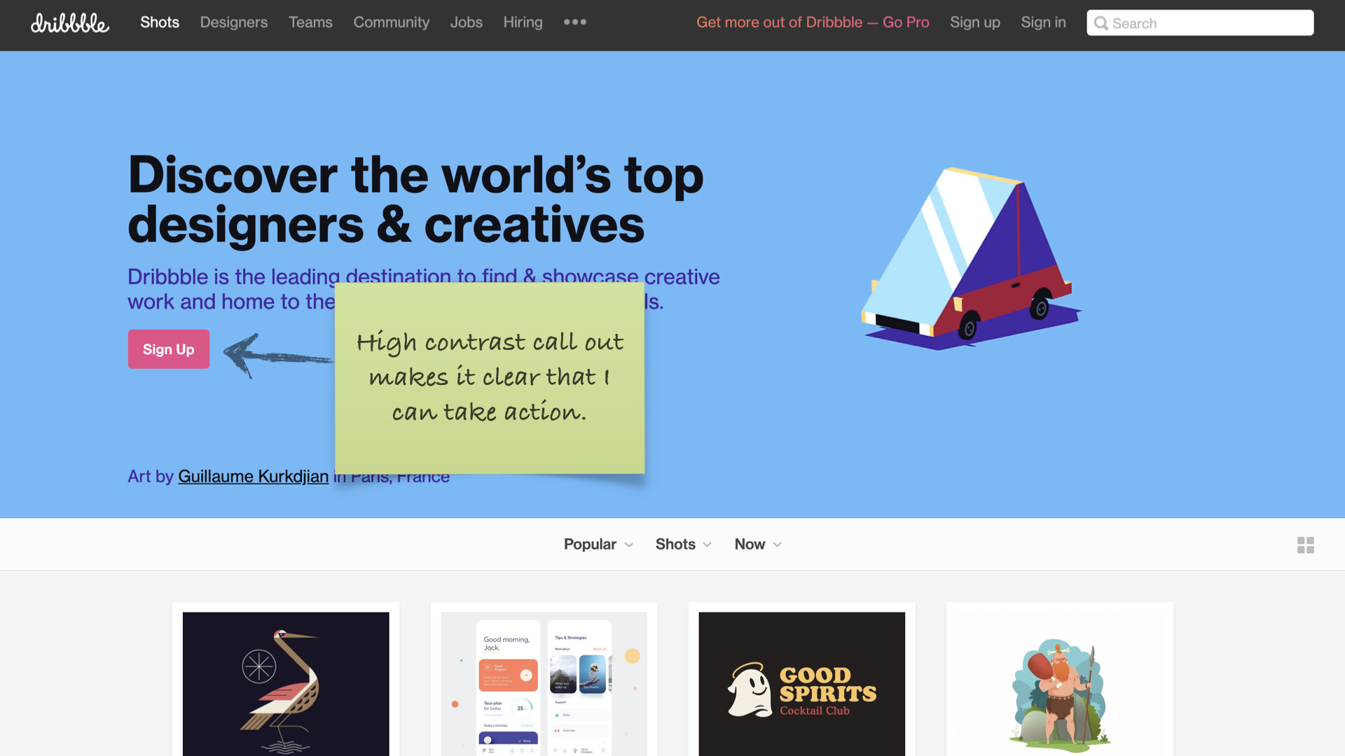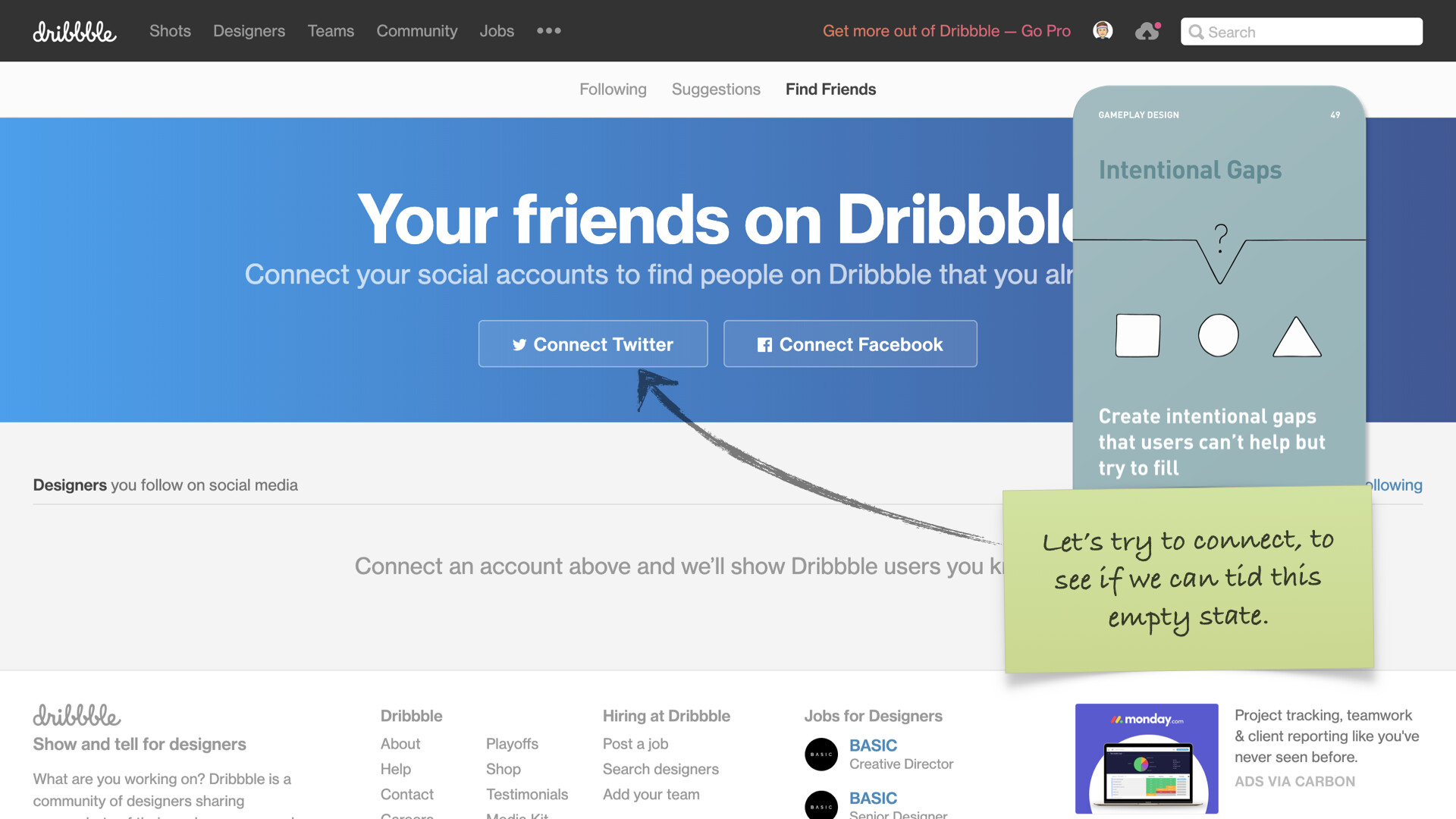 Dribbble is known as one of the leading visual design communities for design peers to share their best and most stunning work. But how well has a design community site designed its own UX flows?